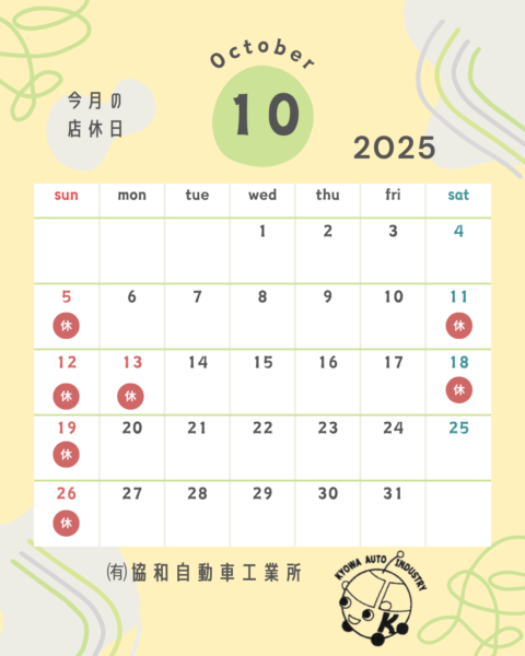 2025年10月の店休日に変更がありますので(研修等の為)お知らせいたします。