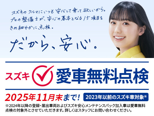 (※2024年以降の登録・届出車両およびスズキ安心メンテナンスパック加入車は愛車無料点検の対象外)