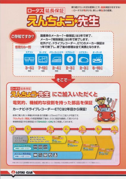 当社はロータスクラブ加盟店のため、長期中古車保証として「えんちょう先生」も取扱いしております。
